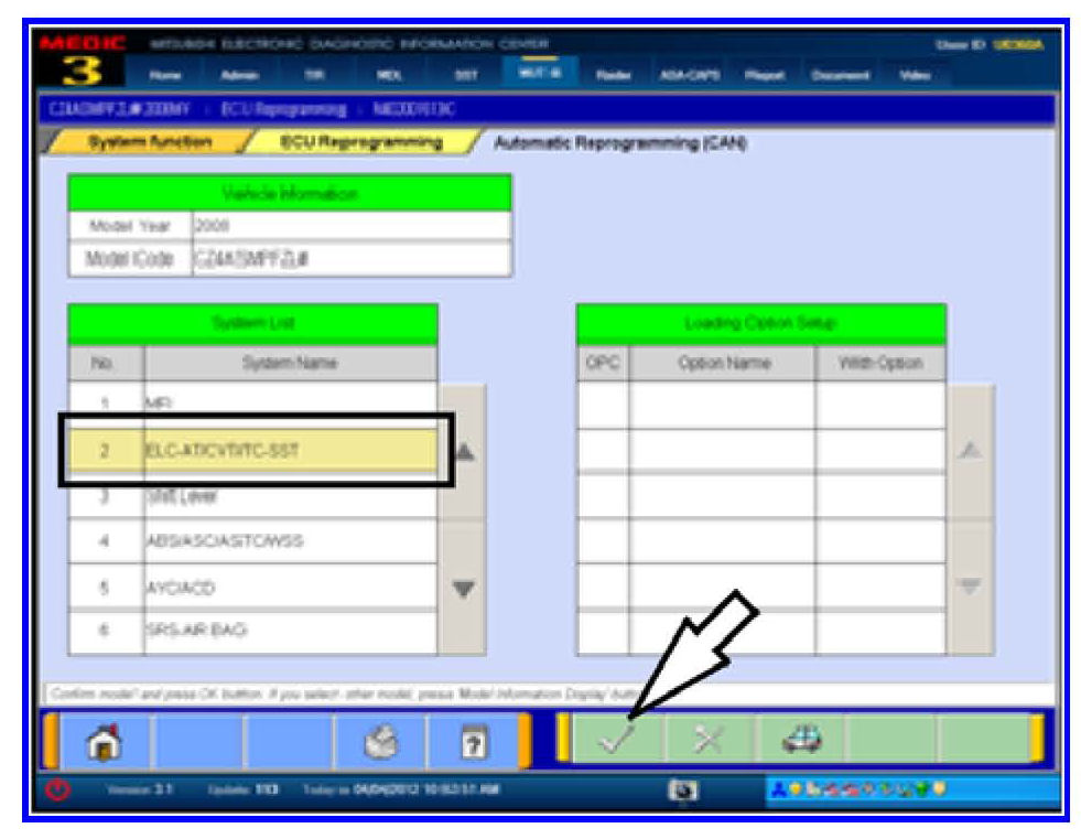 4. Select ELC-AT/CVT/SST and click the check mark to continue.