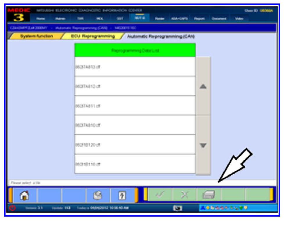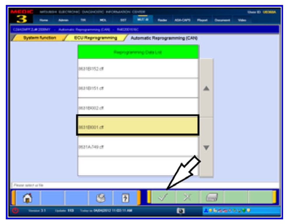 19. Based on information from Step 18, select the correct file from the Reprogramming Data List and click the check mark to continue.