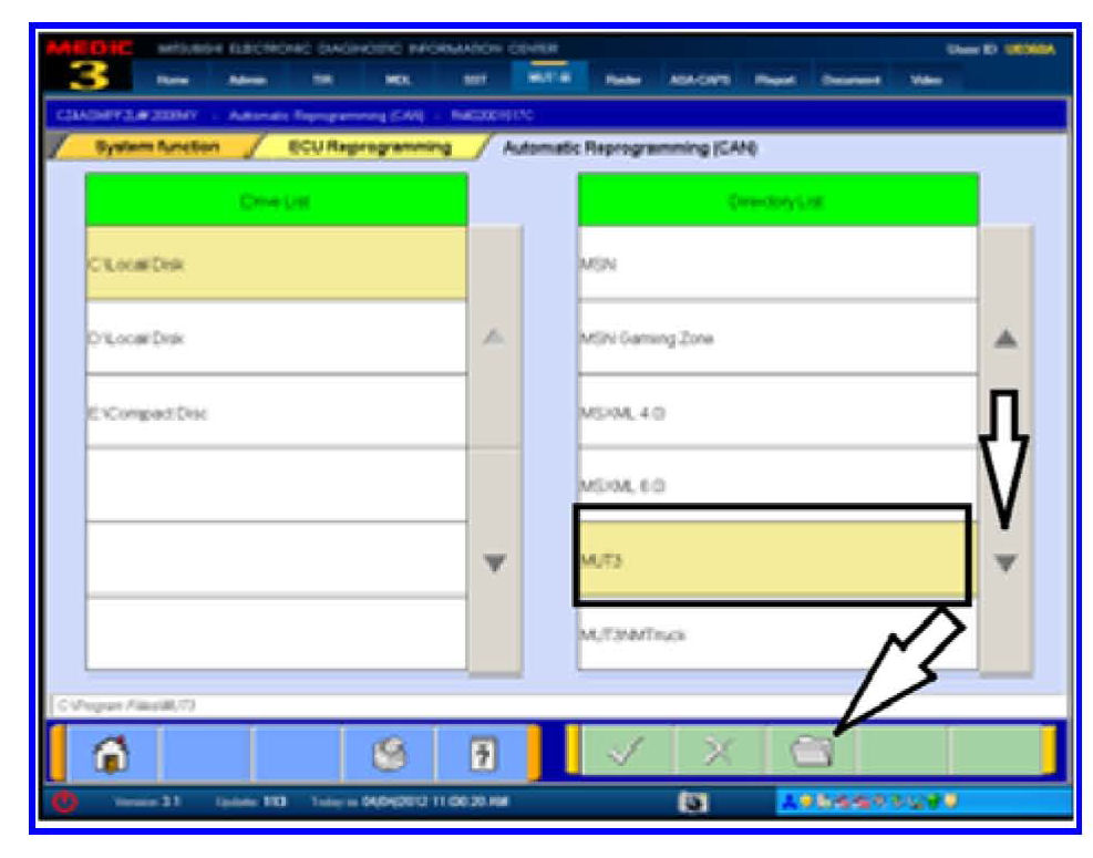 11. Select MUT3 and click the file folder icon at the bottom of the screen.