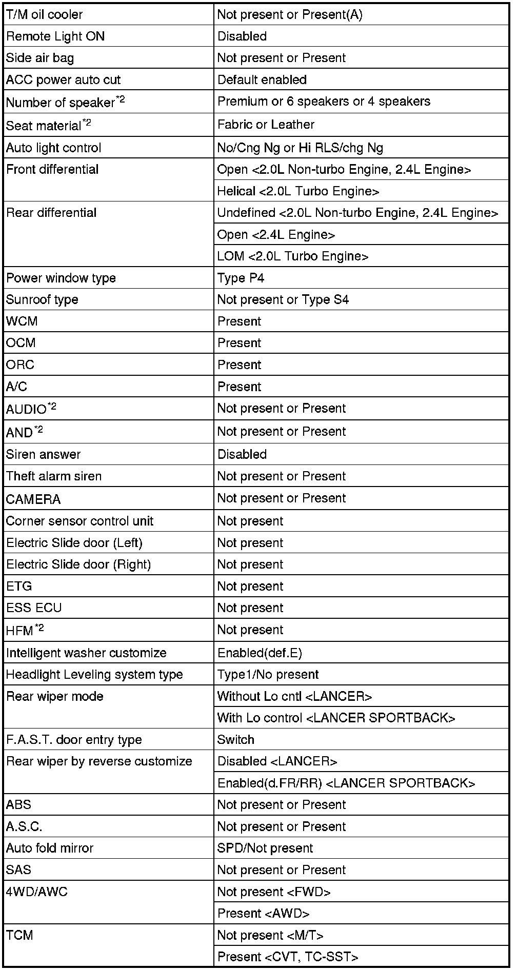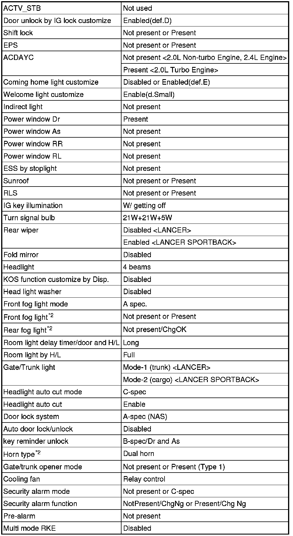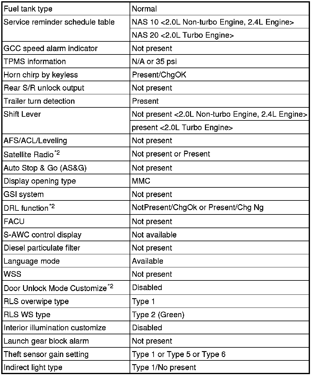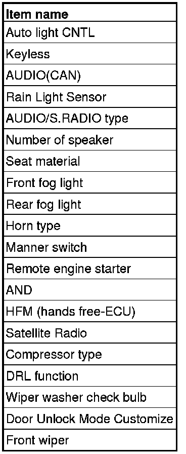 - If there is any item indicated by the option coding after equipment change, set ETACS-ECU so that the option coding data corresponds with the equipment content. Functions and systems do not work normally if the setting does not correspond with the equipment.