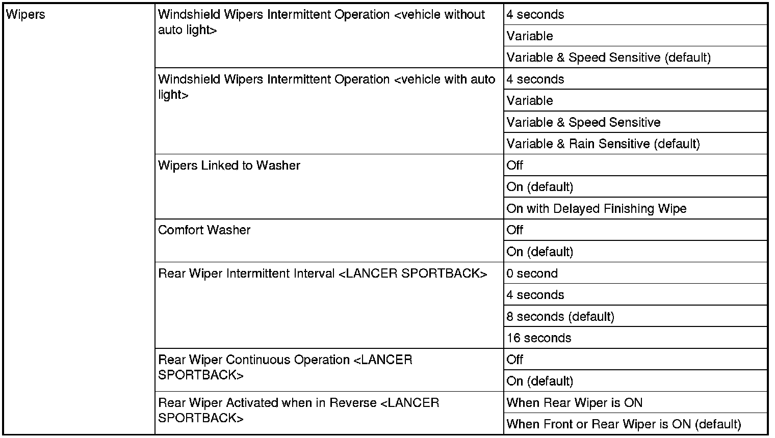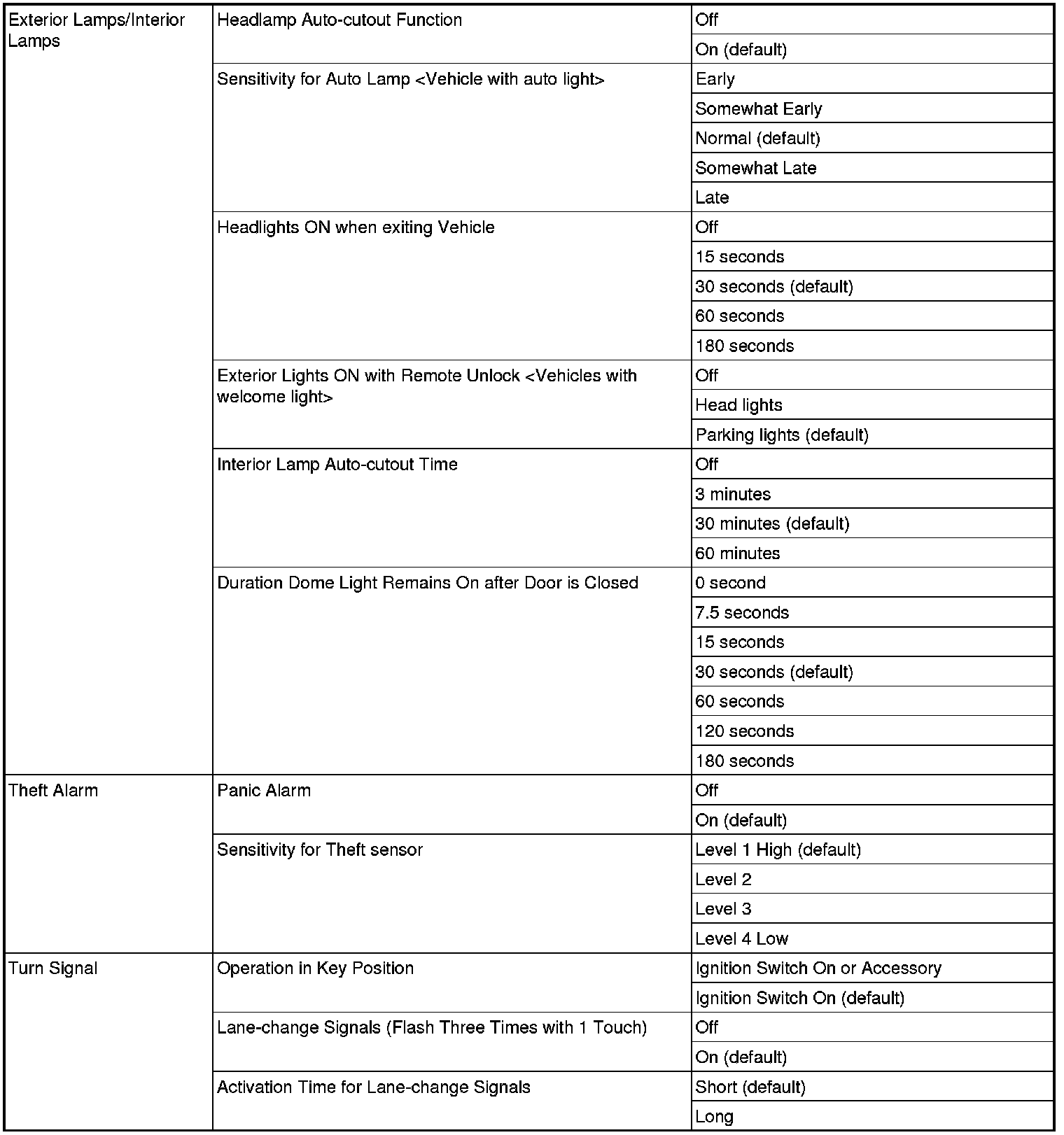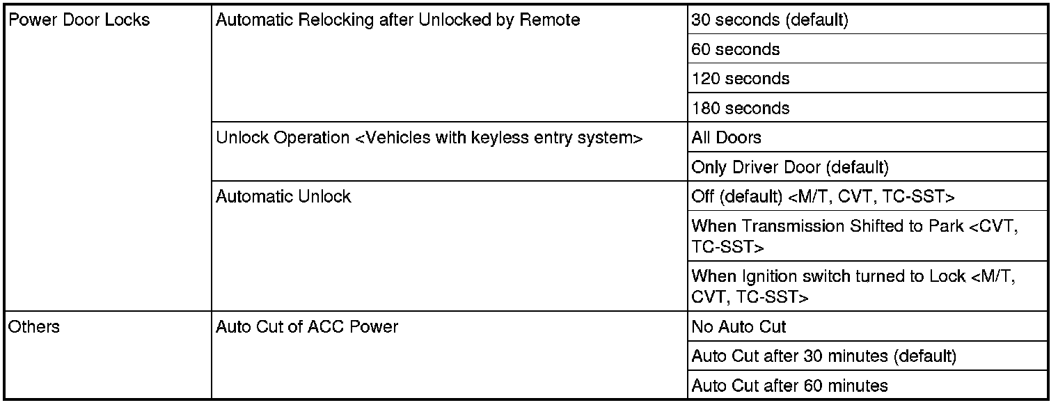 The following ETACS functions can be customized by selecting "Equipment" on the "Settings" screen of the multivision display.