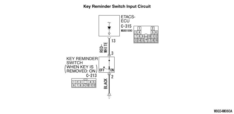 STEP 6. Check the wiring harness between key reminder switch connector C-213 (terminal 3) and ETACS-ECU connector C-315 (terminal 13).