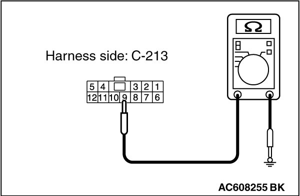 STEP 3. Check the ground circuit to the key reminder switch. Measure the resistance at key reminder switch connector C-213.