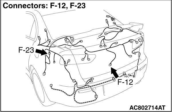 (1)Disconnect trunk lid lock actuator connector F-12 and measure the resistance available at the wiring harness side of the connector.