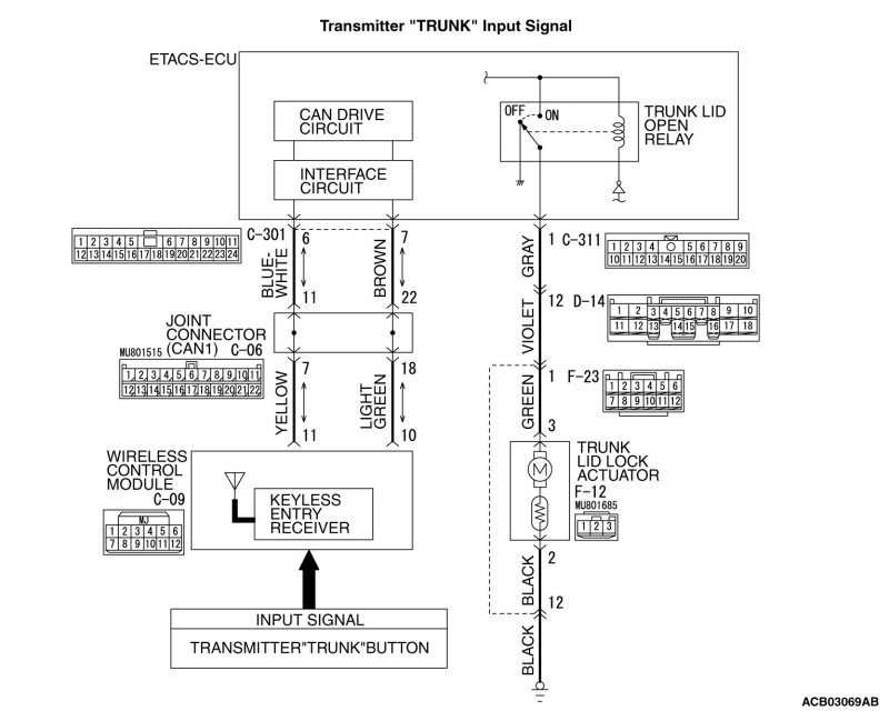 WCM receives the trunk signal from the transmitter, and sends the signal to ETACS-ECU.