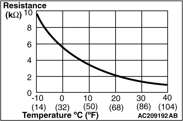 Measure the resistance between the sensor terminals under at least two temperatures. The resistance values should meet the values shown.