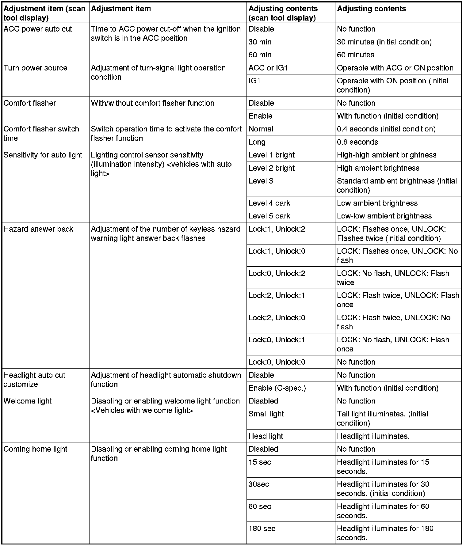 By operating the ETACS system or MMCS of scan tool MB991958, the following functions can be programmed. The programmed information is held even when the battery is disconnected.