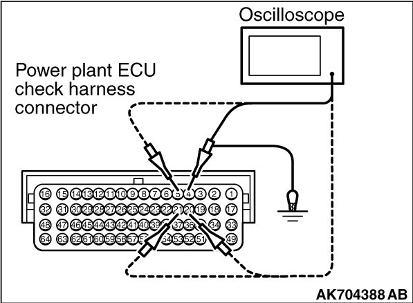 2. Connect the oscilloscope probe to check harness terminal No. 31, No. 32, No. 47 and No.