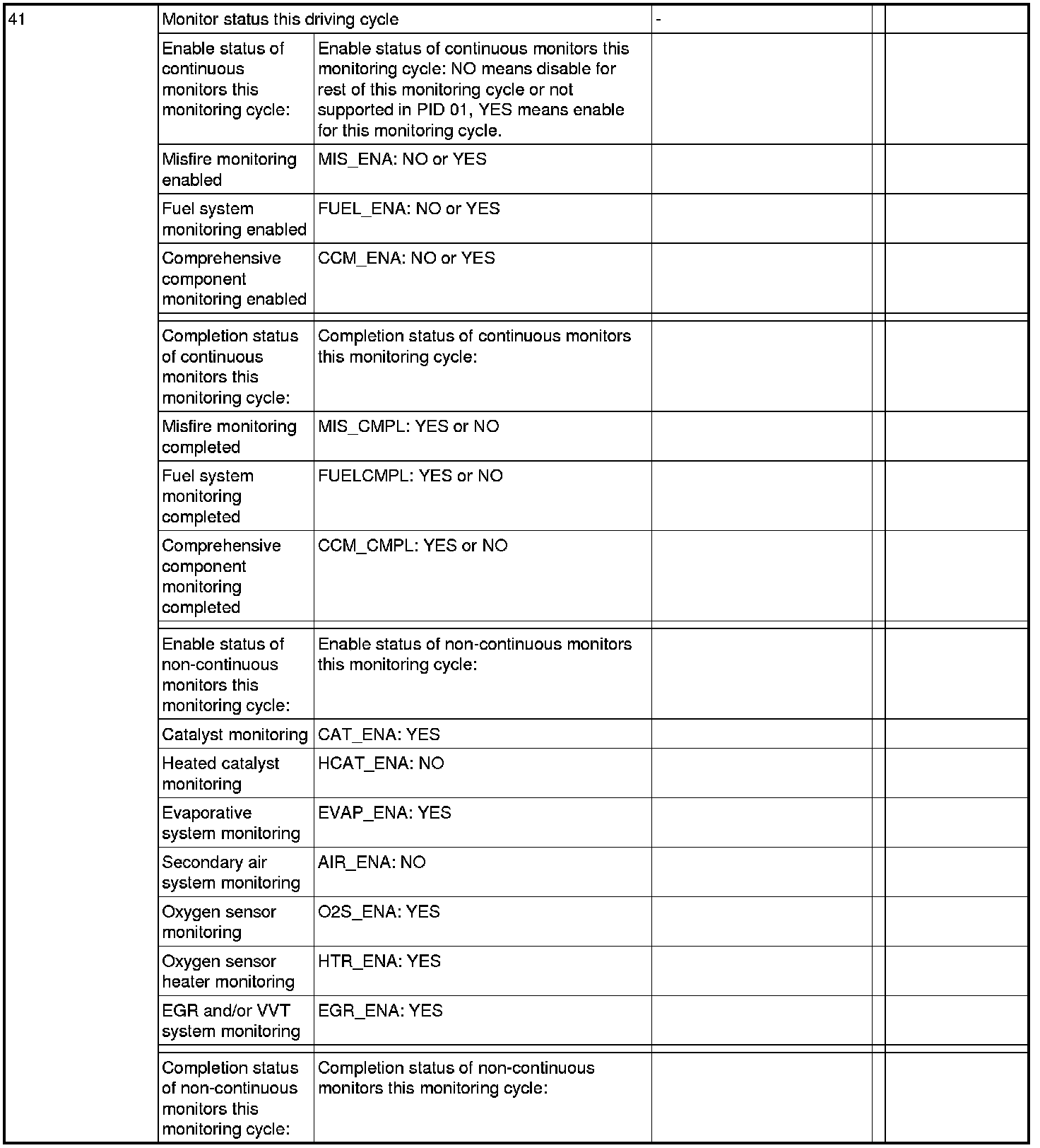 The ECM will respond to this message by transmitting the requested data value last determined by the system. All data values returned for sensor readings will be actual readings, not default or substitute values used by the system because of a fault with that sensor.