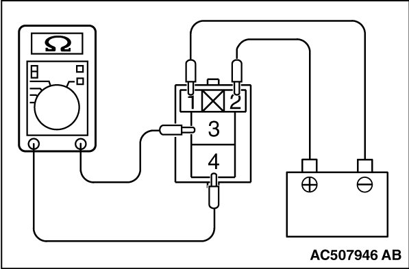 3. Check for continuity between the CVT control relay terminals No.3 and No.4.