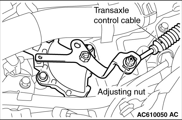 5. Use the adjusting nut to tighten the transaxle control cable to the specified torque.