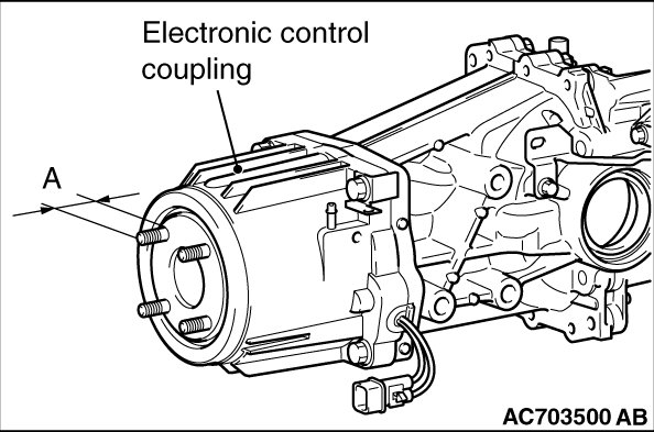 1. Check that the length of the electronic control coupling stud bolt (A) is within the standard value range.