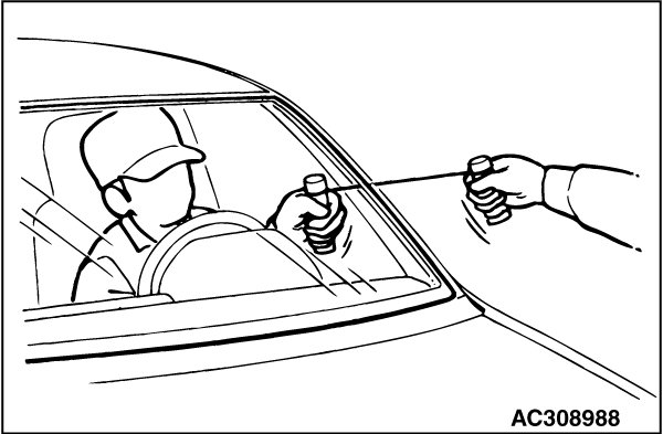 (2) Pass the piano wire from the inside of the vehicle through the hole.
