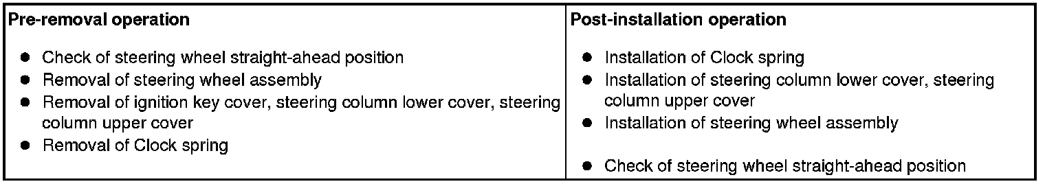 - To remove the driver airbag module, refer to Service Precautions Service Precautions and Driver's Air Bag Module and Clock Spring Driver's Air Bag Module and Clock Spring Removal and Installation (Except Ralliart) [Except RALLIART] or Driver's Air Bag Module and Clock Spring Removal and Installation (Ralliart) [RALLIART].