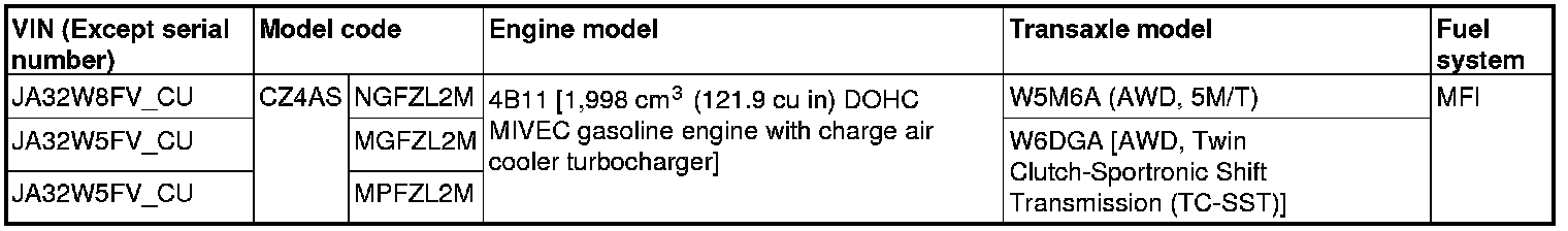 Lancer Evolution L4-2.0L Turbo (4B11T/C)