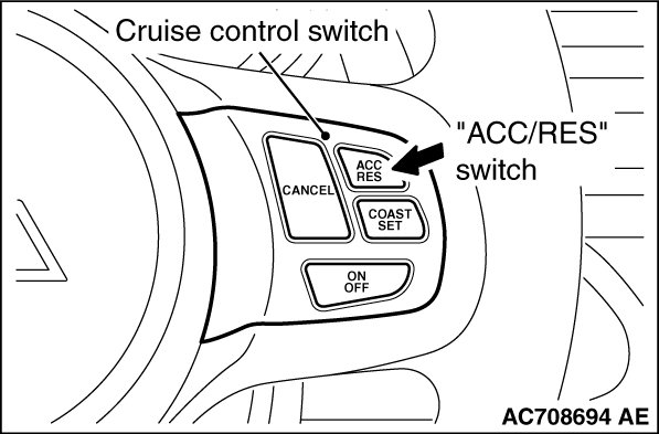 5. Check to be sure that acceleration continues while the "ACC/RES" switch is pushed, and that the speed at the time it was released becomes the constant driving speed.