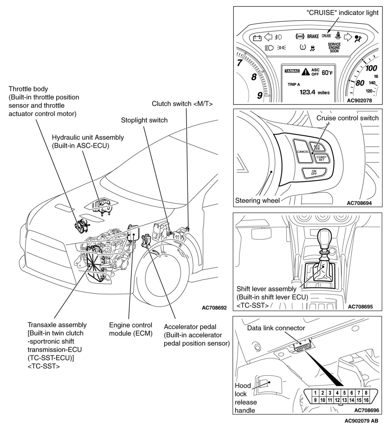 For this cruise control system, in conjunction with the electronic throttle valve control system, the engine control module (ECM) electronically controls the throttle valve.