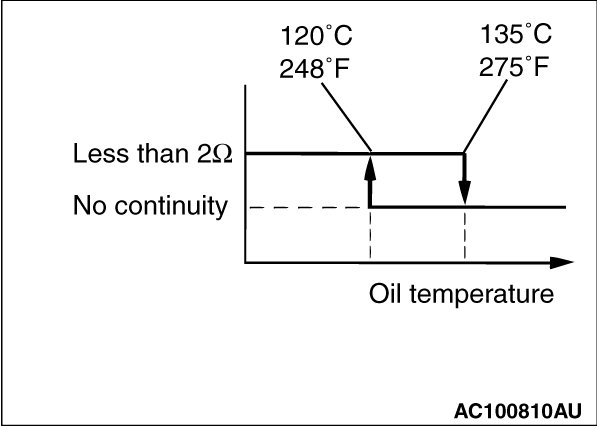 When the oil temperature is 135°C (275°F) or more and there is no continuity, the resistance will not be 2ohms or lower until the oil temperature reduces to 120°C