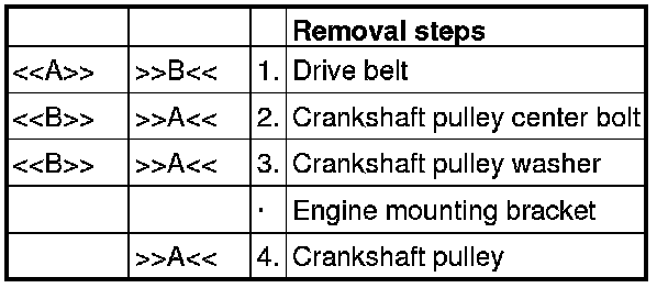 [[B]] CRANKSHAFT PULLEY CENTER BOLT/CRANKSHAFT PULLEY WASHER REMOVAL