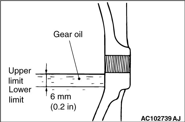 3. If the gear oil level is not in between the upper limit and the lower limit, fill the specified gear oil to the bottom of the filler plug hole.