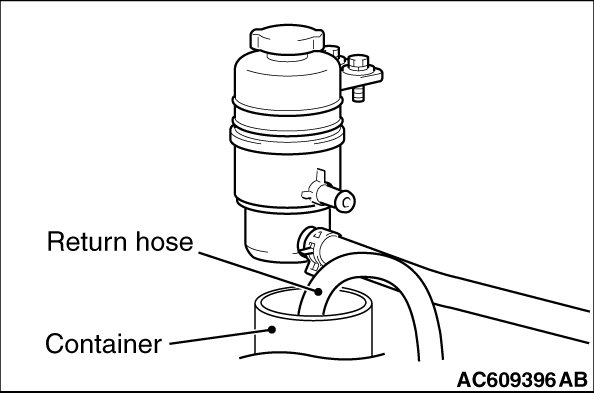 6. Fill the oil reservoir with GENUINE MITSUBISHI POWER STEERING FLUID to the lower position of the filler, and then bleed the air (Refer to Service and Repair).