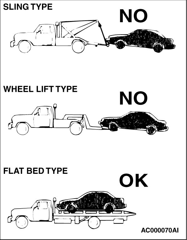 - The vehicle must not be towed by placing only its front wheels on a rolling dolly, because to do so will result in deterioration of the viscous coupling and in the viscous coupling causing the vehicle to jump forward suddenly.