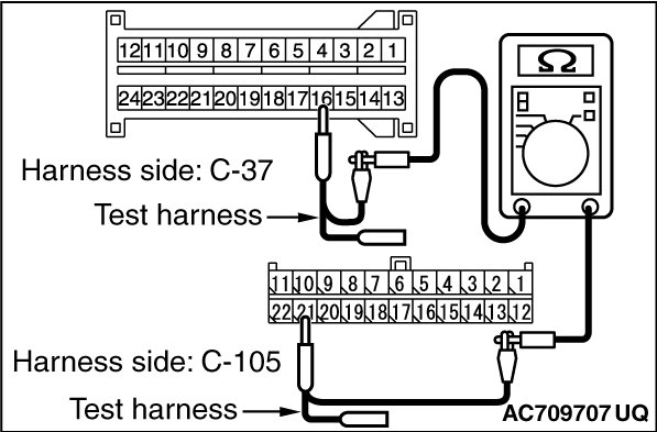 (1)Disconnect joint connector (CAN1) C-105 and SRS-ECU connector C-37, and check the wiring harness.