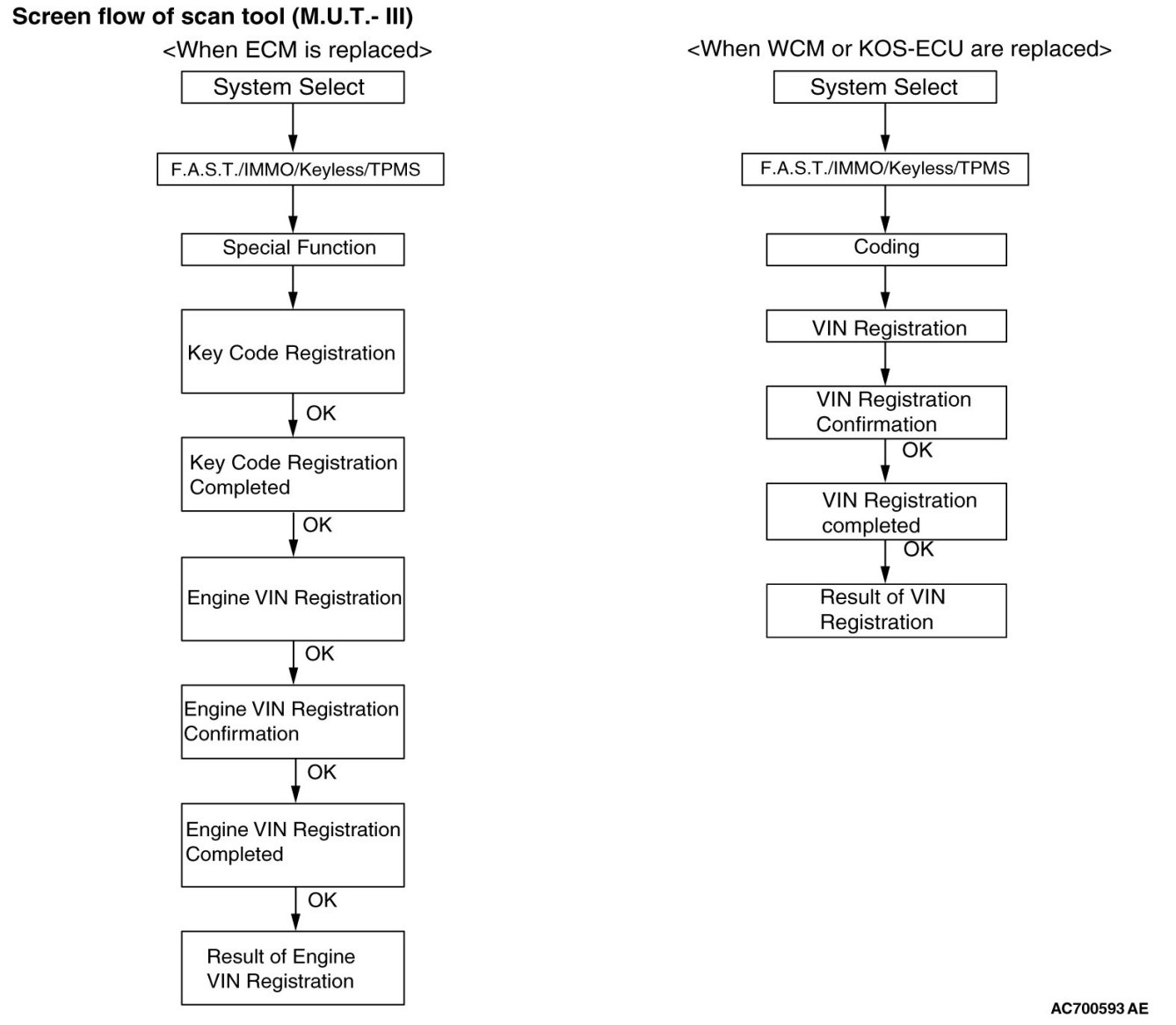 Follow the procedure below to register the VIN of the Wireless Control Module (WCM) and the Keyless Operation System (KOS).