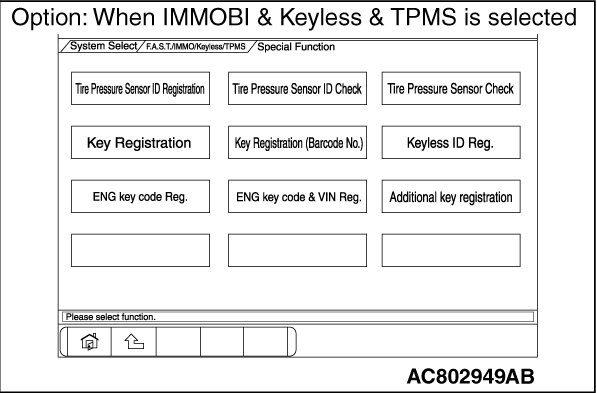 8. Select "F.A.S.T./IMMO/Keyless/TPMS" button from the "System Select" screen. Then, select the applicable option code item and push the OK button.