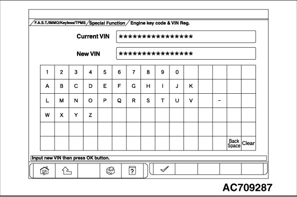 11. Push the OK button after "ENG key code & VIN Reg." is displayed.