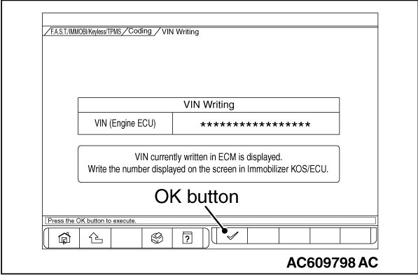 11. Push the OK button after the VIN written in the engine control module is displayed.