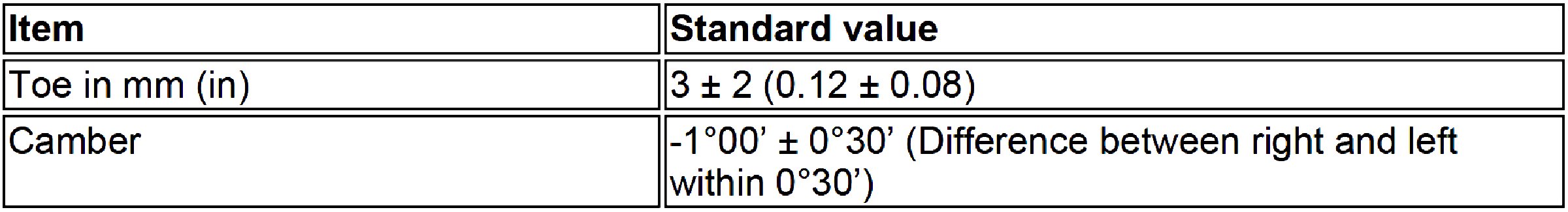 Wheel Alignment Specifications