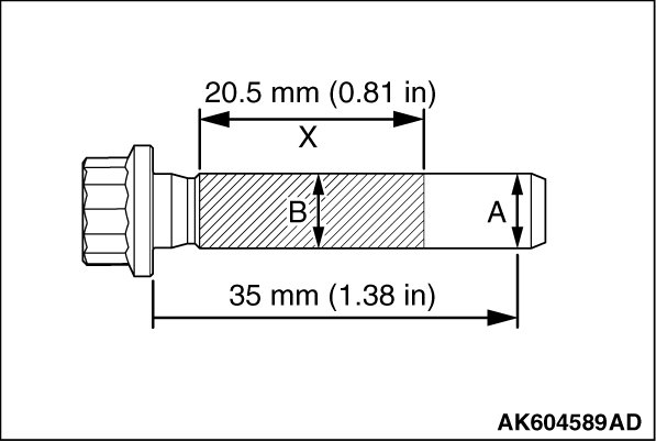 If the difference of outside diameter of thread exceeds the limit, replace the bolt