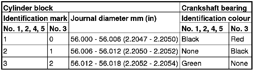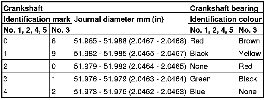 The crankshaft bearing upper has an identification colour at the illustrated position.