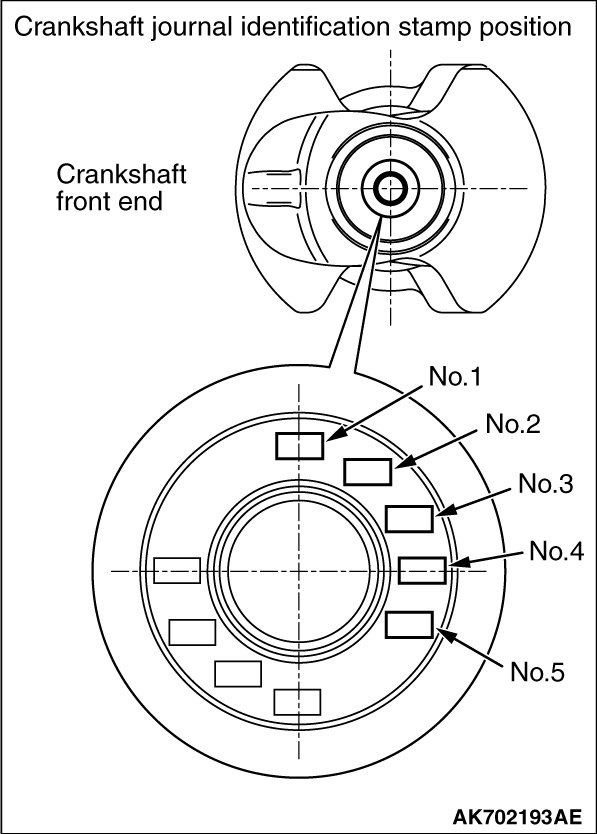 When replacing the crankshaft bearing upper, select a bearing with the size corresponding to the cylinder block journal diameter.