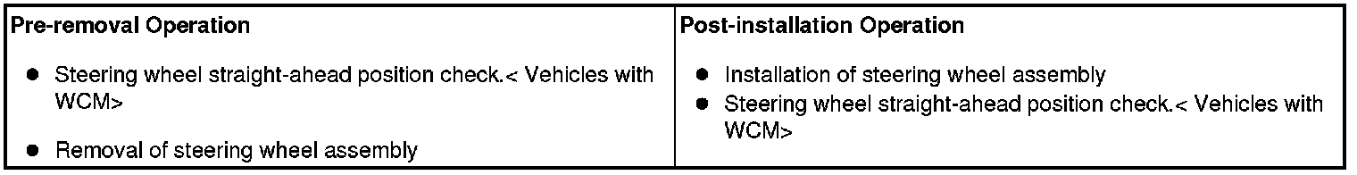 Before removing the steering wheel assembly, refer to Service Precautions Service Precautions and Driver's Air Bag Module and Clock Spring Removal and Installation [Vehicles with WCM].