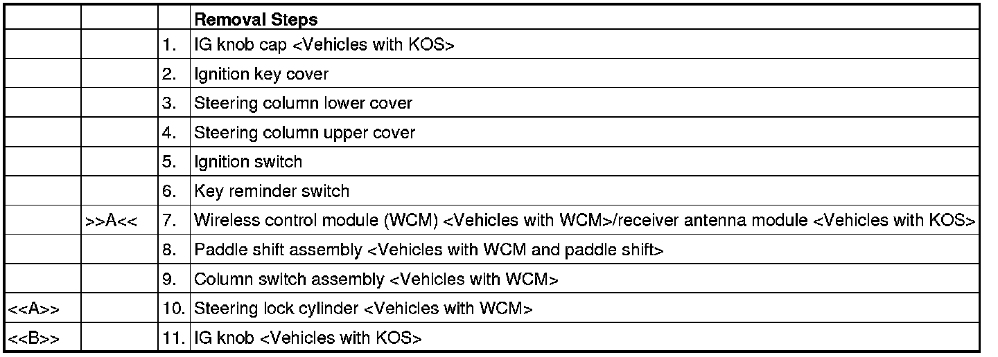 [[A]] STEERING LOCK CYLINDER REMOVAL [VEHICLES WITH WCM]