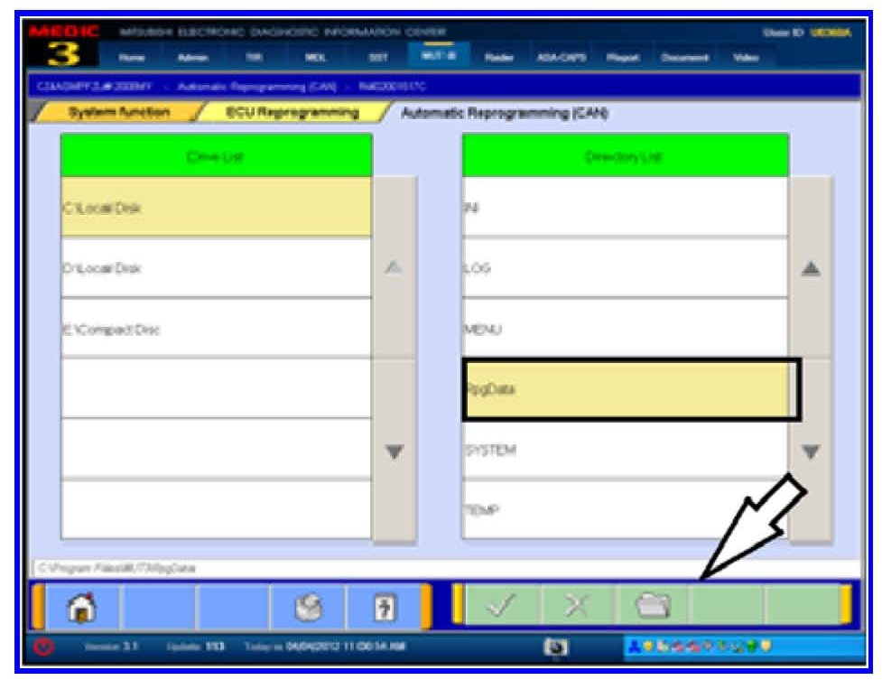 11. Select MUT3 and click the file Folder icon at the bottom of the screen.