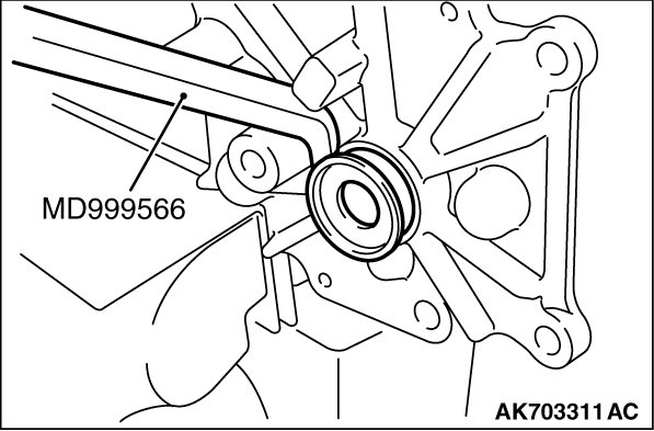 Using special tool, MD999566, remove the oil seal.