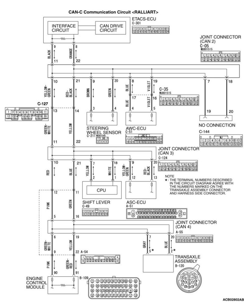 - Malfunction of the connector [joint connector (CAN2) or ETACS-ECU connector improperly connected]