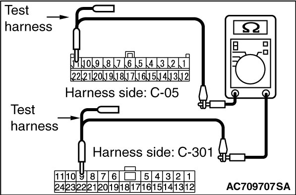 (3)Check the wiring harness between joint connector (CAN2) C-05 (terminal 22) and ETACS-ECU connector C-301 (terminal 8)
