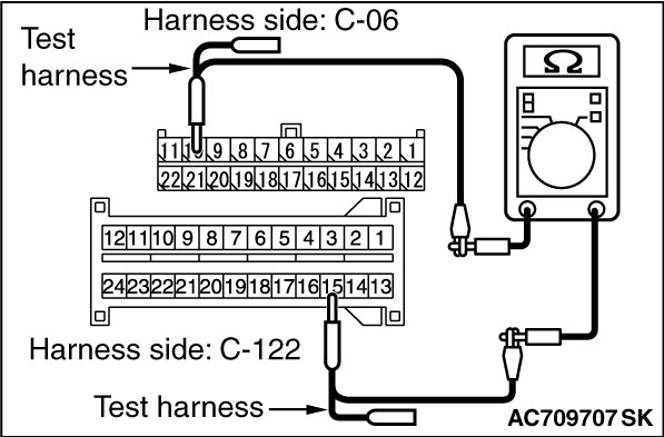 (1)Disconnect joint connector (CAN1) C-06 and SRS-ECU connector C-122, and check the wiring harness.