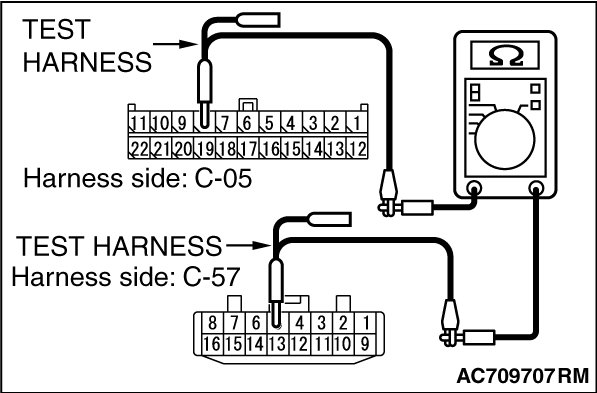 (1)Disconnect joint connector (CAN2) C-05 and AWD-ECU connector C-57, and check the wiring harness.