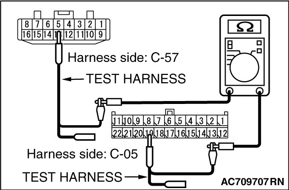 STEP 2. Check the wiring harness between joint connector (CAN2) C-05 and AWD-ECU connector C-57 for open circuit.