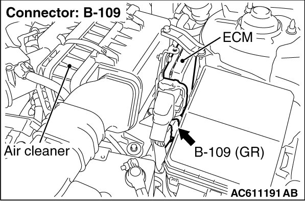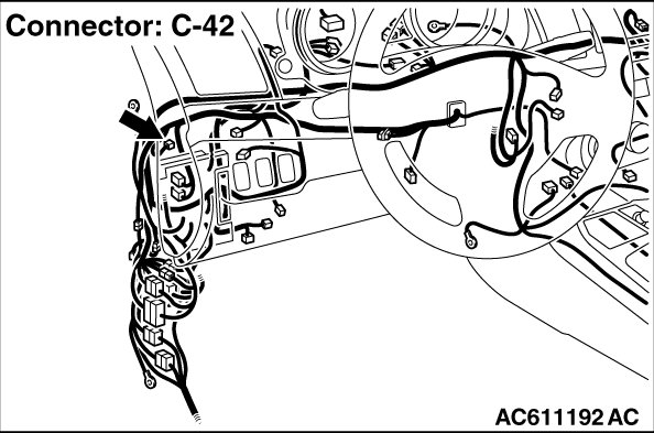 STEP 2. Check ECM connector B-109 and clutch switch connector C-42, for loose, corroded or damaged terminals, or terminals pushed back in the connector.