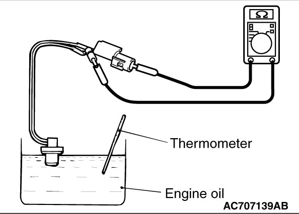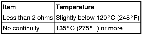 When the oil temperature is 135°C (275°F) or more and there is no continuity, the resistance will not be 2ohms or lower until the oil temperature reduces to 120°C