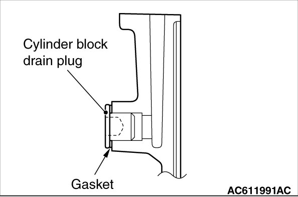 8. Replace the cylinder block drain plug gasket, and tighten the drain plug to the specified torque.