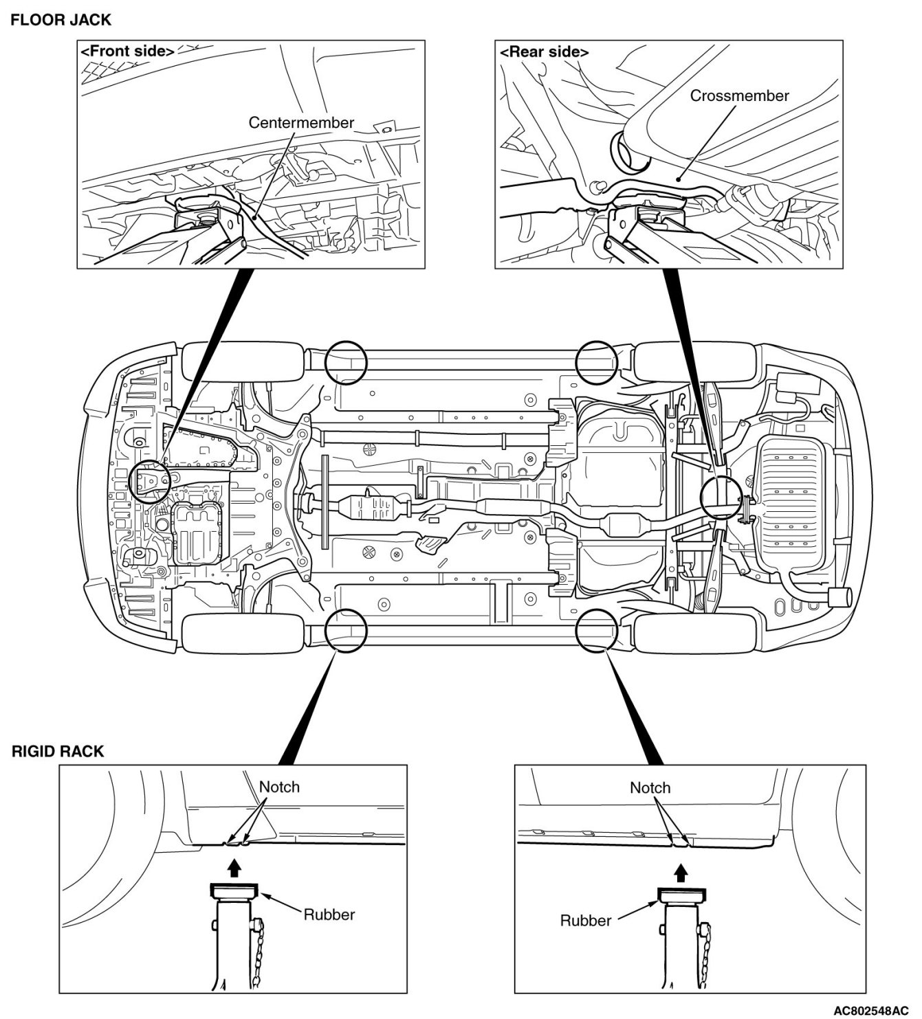 - For lifting, put rubber or similar material between the side sill and rigid rack, otherwise the side sill area will be damaged.