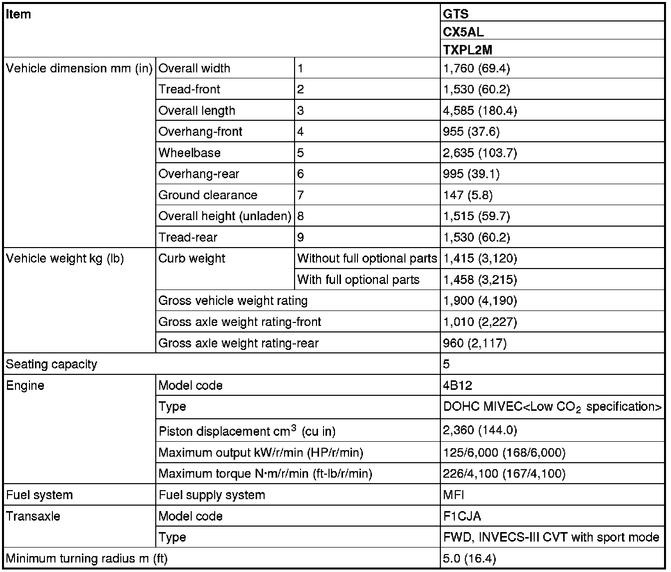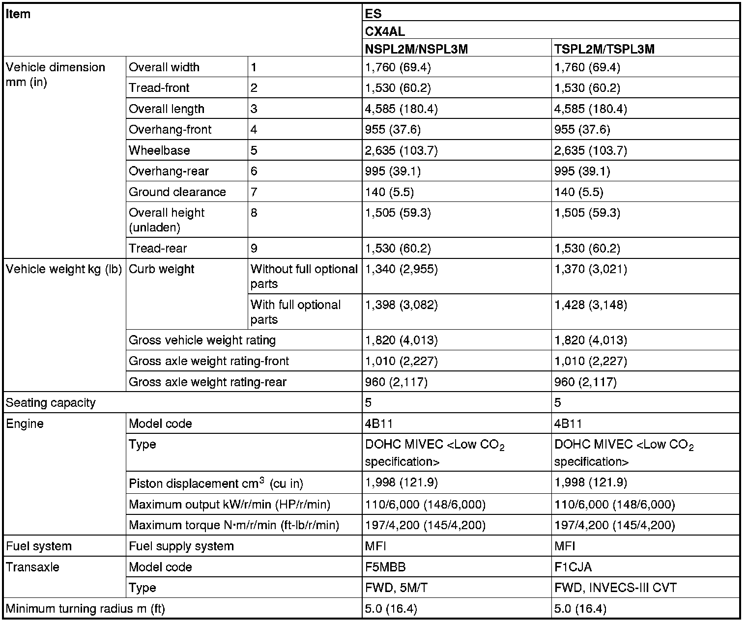GENERAL DATA AND SPECIFICATIONS [LANCER SPORTBACK]