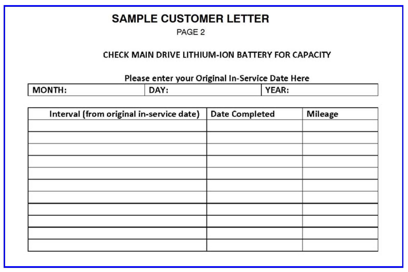 Samples of the customer letter, Warranty and Maintenance Manual Addendum and Owner's Manual Addendum appear later in this TSB.
